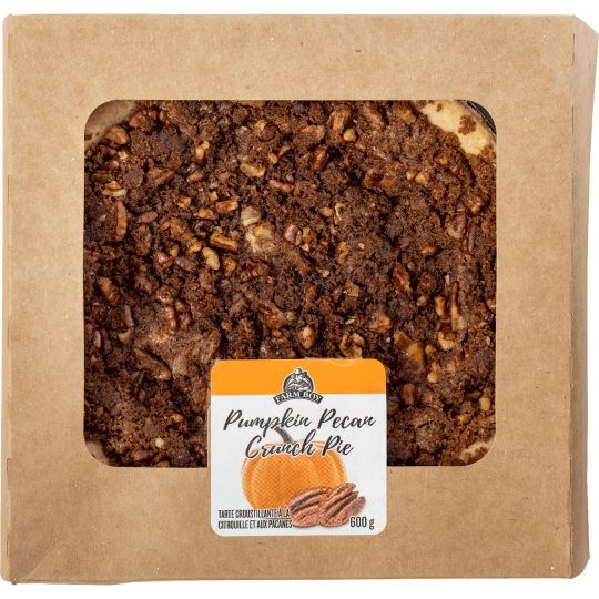 Citrouille • Eau • Sucre • Farine De Blé Enrichie • Shortening D'huile De Palme Et De Soja • Cassonade • Lait Écréme En Poudre • Pacanes • Solides De Sirop De Maïs • Margarine • Jaunes D'oeuf • Amidon De Maïs Modifié • Lactosérum En Poudre • Épices • Amidon De Tapioca Modifié • Protéine Du Lait Hydrolysée • Isolat De Protéine De Soja • Concentré De Protéine De Lactosérum • Sel • Dextrose • Agar • Acide Sorbique • Sorbate De Potassium • Propionate De Sodium. Contient : Blé, Soja, Lait, Pacanes, Oeuf. Peut Contenir : Arachides, Autres Noix, Sésame, Poisson, Sulfites, Moutarde.