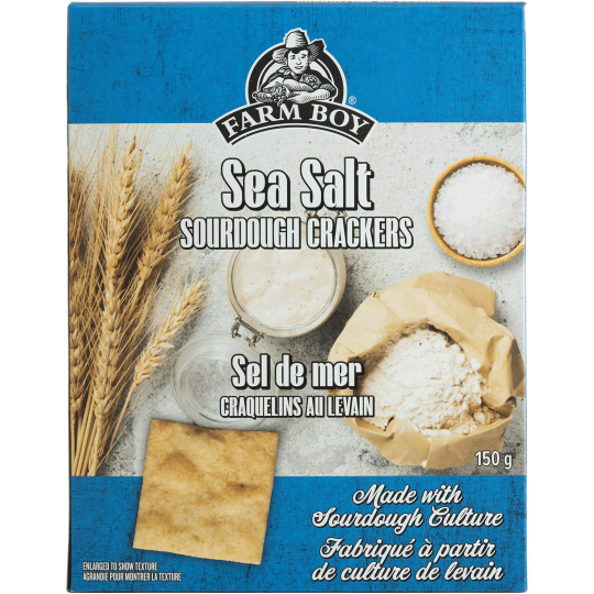Private Label Products > Grocery and Gourmet > Snack Foods > Crackers > Farm Boy™ Sea Salt Sourdough Crackers (150 g)