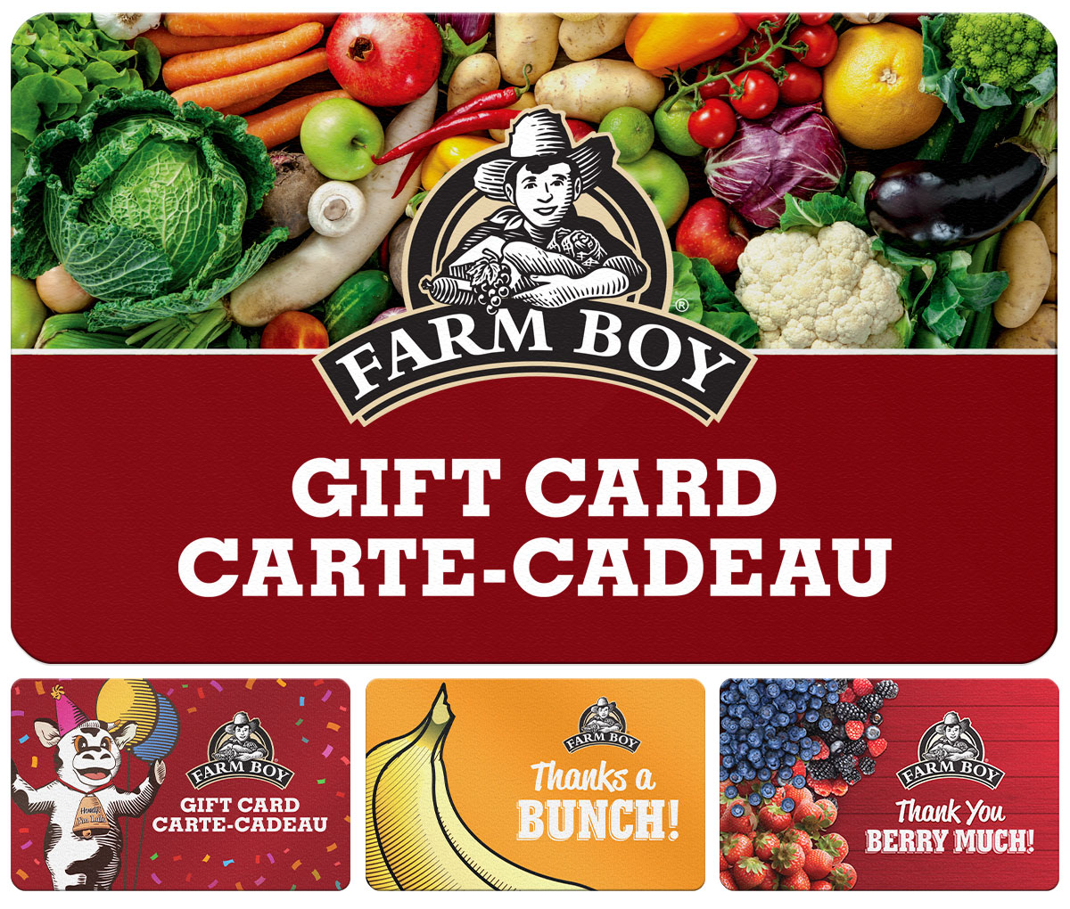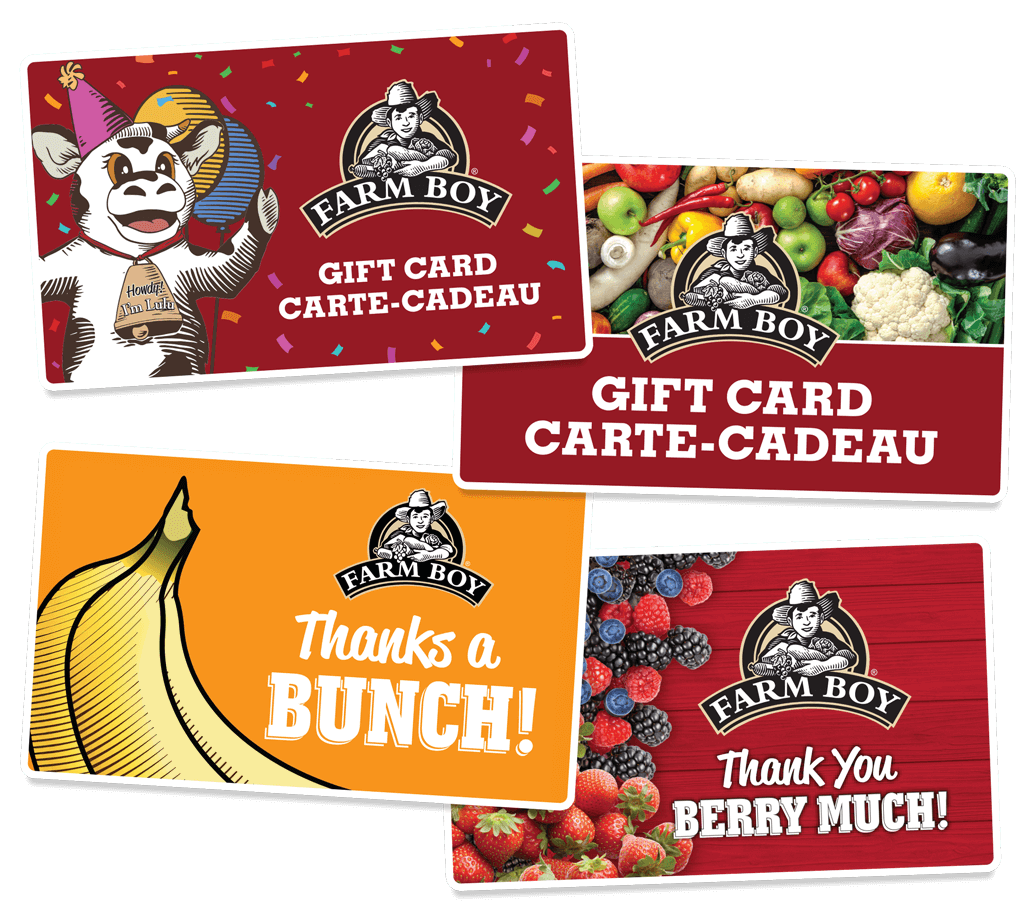 Farm Boy™ Gift Cards can be purchased at all Farm Boy stores in Ontario.