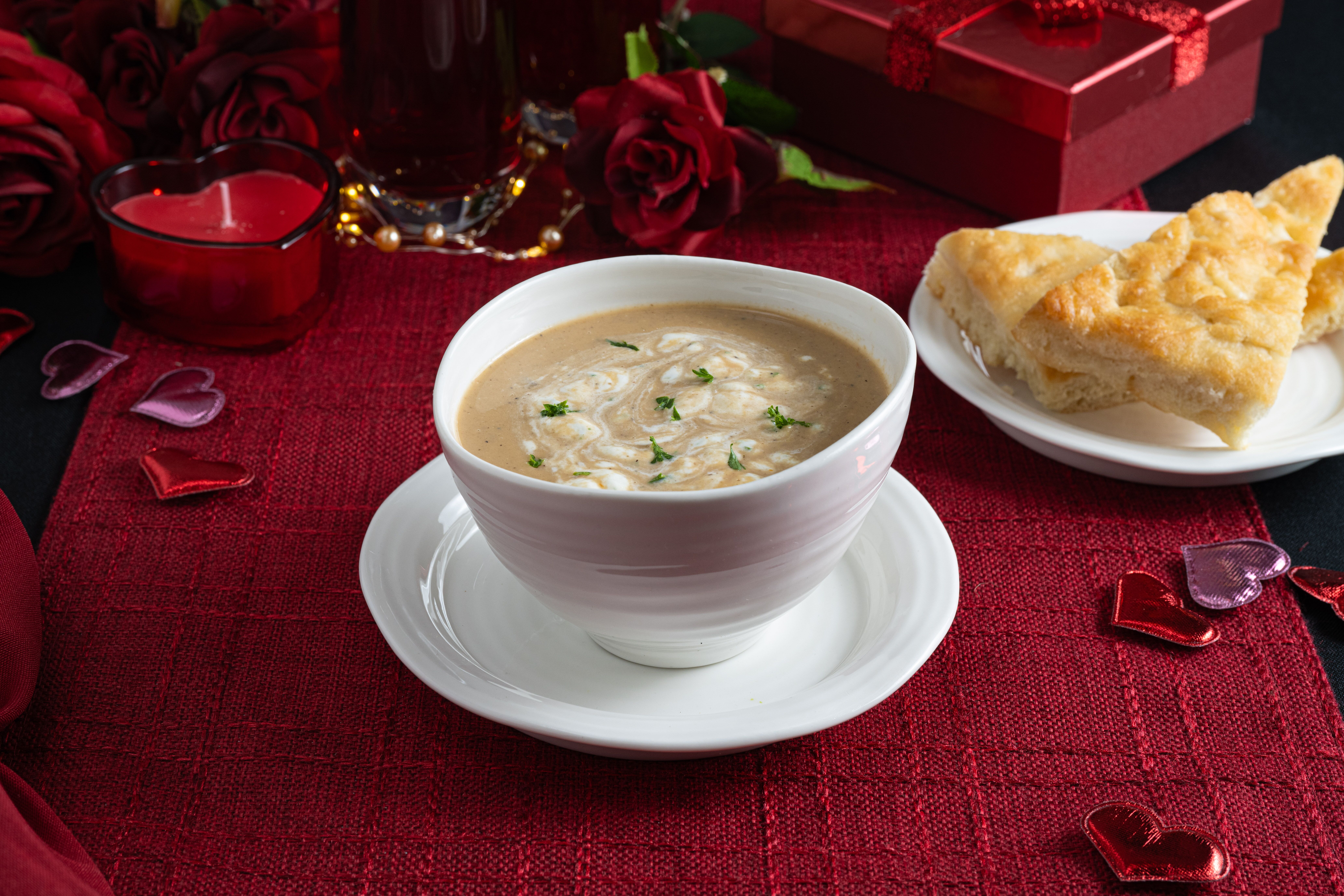 | Cream of Truffle Mushroom Soup and Truffle Herb Cream | Place soup in medium saucepan and cook over medium low heat for 5 minutes until temperature reaches 165°F. Garnish with Truffle Herb Cream. |